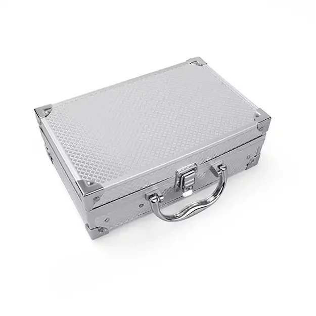 Boîte de maquillage noire synthétique contenant fard à paupières, blush, poudre compacte, fond de teint, gloss, vernis à ongles, gloss crème, paillettes, crayon pour les yeux et crayon à lèvres.
