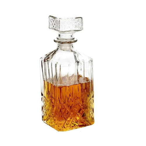 Apportez une touche de sophistication à votre bar ou à votre table avec cette carafe à whisky en verre avec bouchon. Son design élégant et ses motifs décoratifs offrent une présentation raffinée pour vos spiritueux.