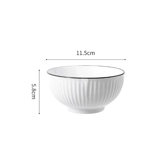 Apportez une touche moderne et raffinée à votre table avec ce bol en céramique blanche texturée. Son design élégant est sublimé par de fines stries verticales et un délicat bord noir qui ajoute contraste et sophistication.